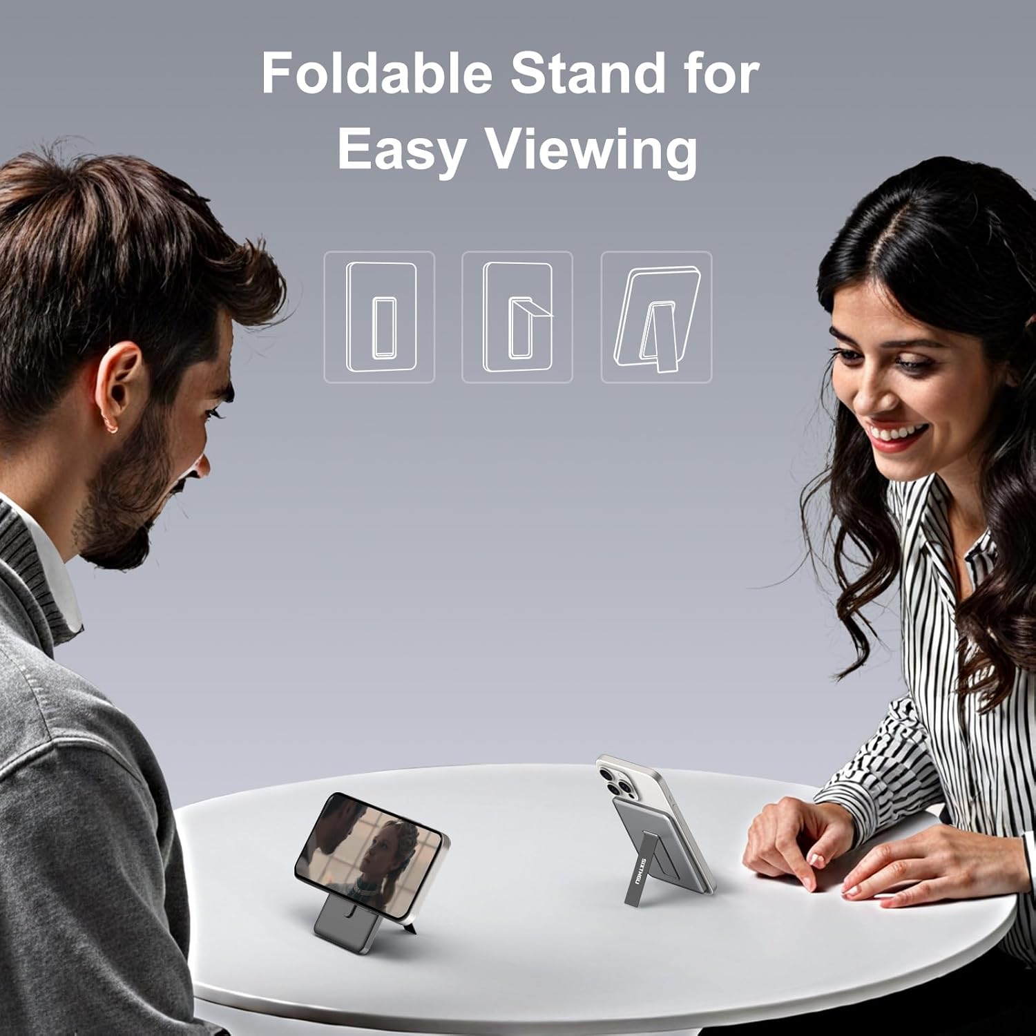 Magnetic Slim Portable Charger with Stand, 5000mAh Wireless Power Bank[Alloy-Made], PD 20W Fast Charging Compatible with iPhone 16/15/15 Pro/15 Pro Max, iPhone 14/13/12 Series, Black