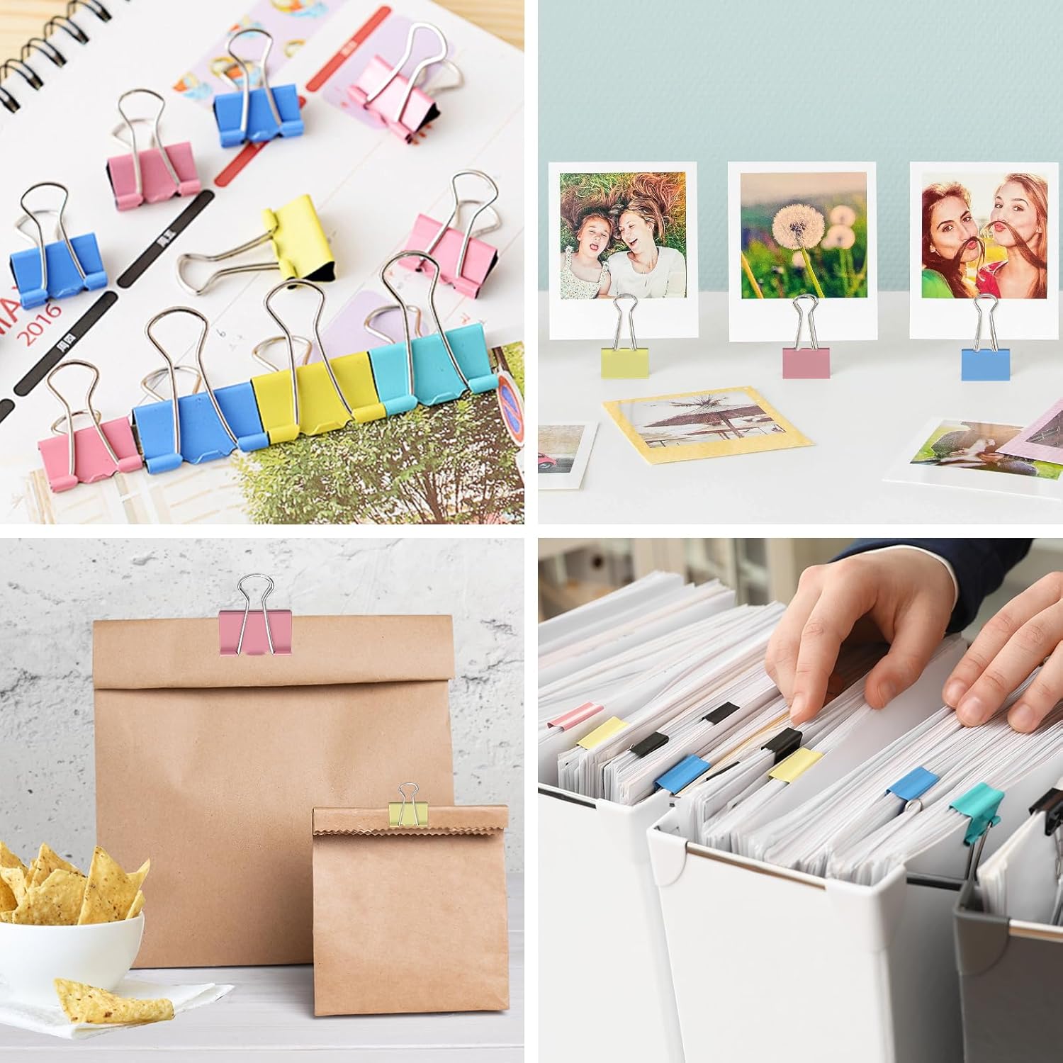 - Versatile Colored Binder Clips Assorted Sizes: Perfect for food bags, clothes, or office files. Ideal for home, school, or work. These metal paper clamps handle any organizing challenge