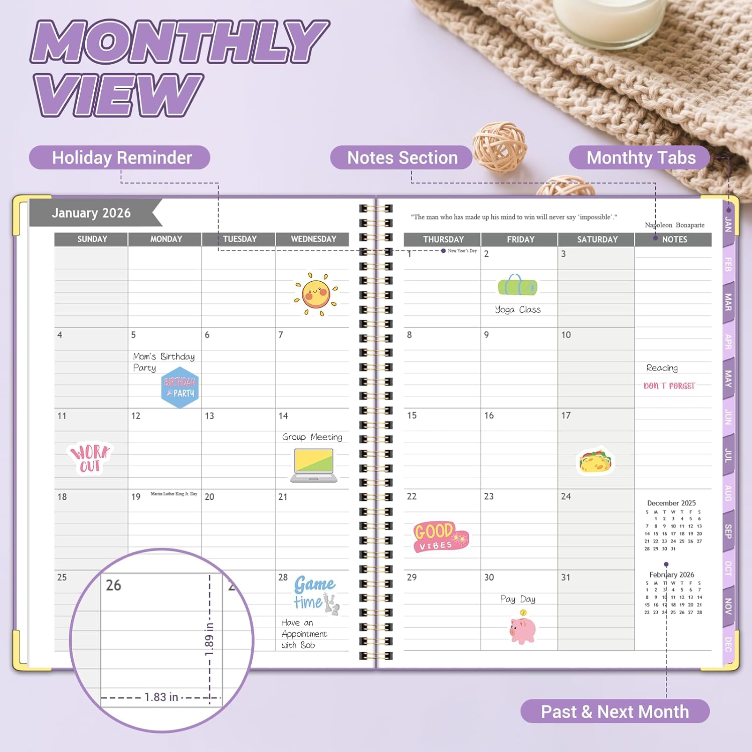 - MONTHLY PAGES: 2026 weekly planner displays US/Canadian holidays and monthly motivational quotes. Agenda planner includes past/previous calendar references so you can better review the past and plan for the future.