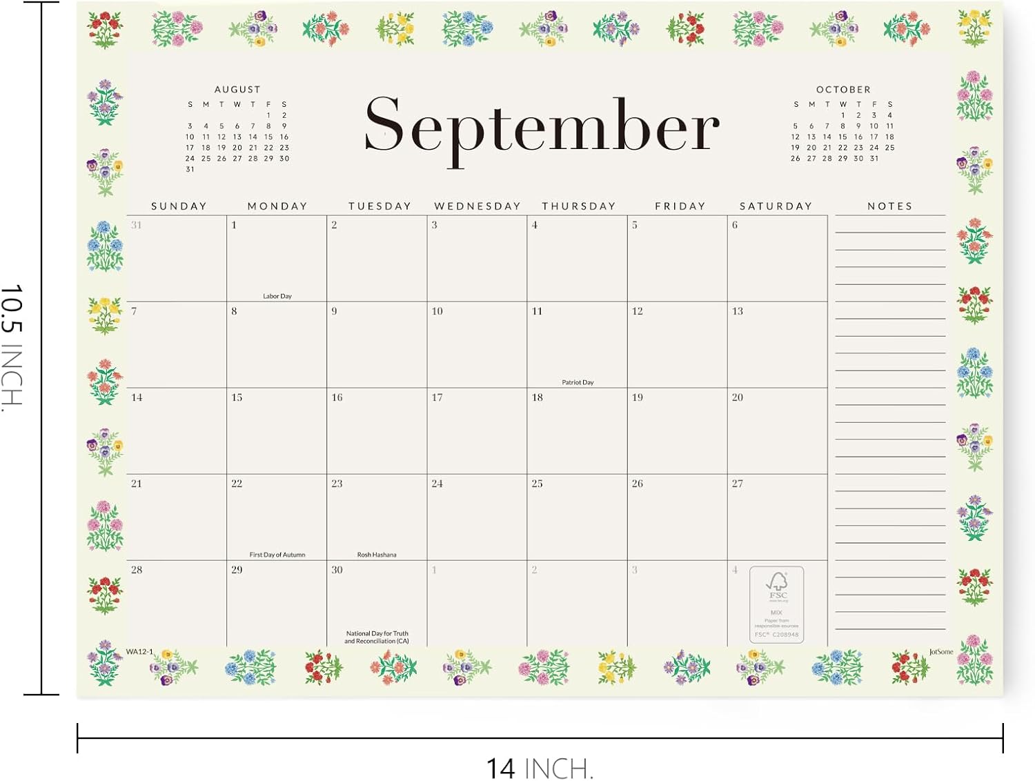 Jotsome Desk Calendar 2025-2026, Desk Pad Calendar From September 2025 to December 2026, Desk Blotter Calendar Decoration in Home and Office for Easy Organizing (Floral)
