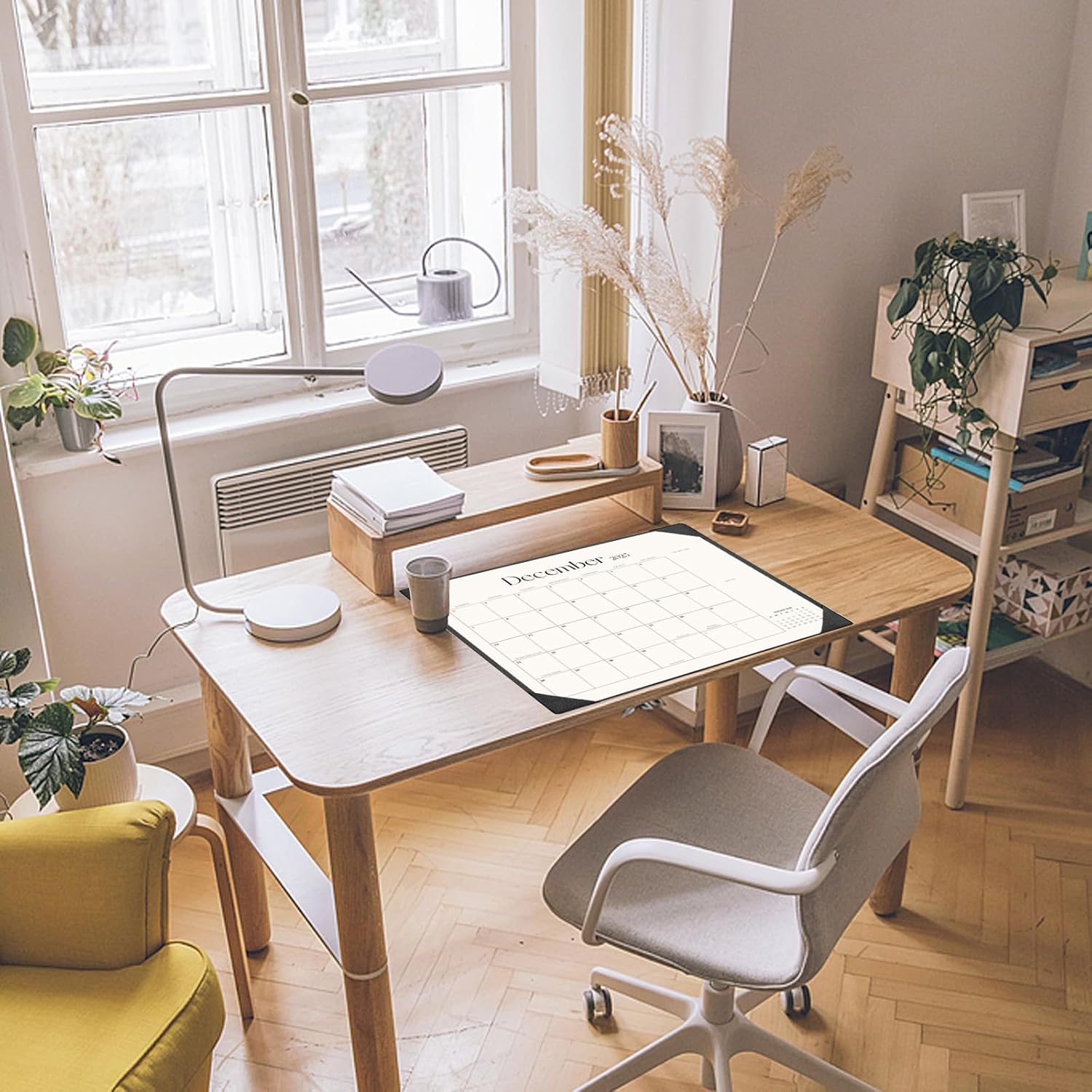 - Desk Mat Design – Reusable double-layer PU leather backboard protects the desktop from scratches and stains, securely holds the calendar, and adds sophistication to any workspace.