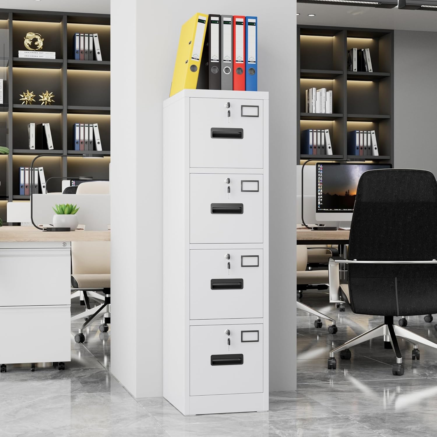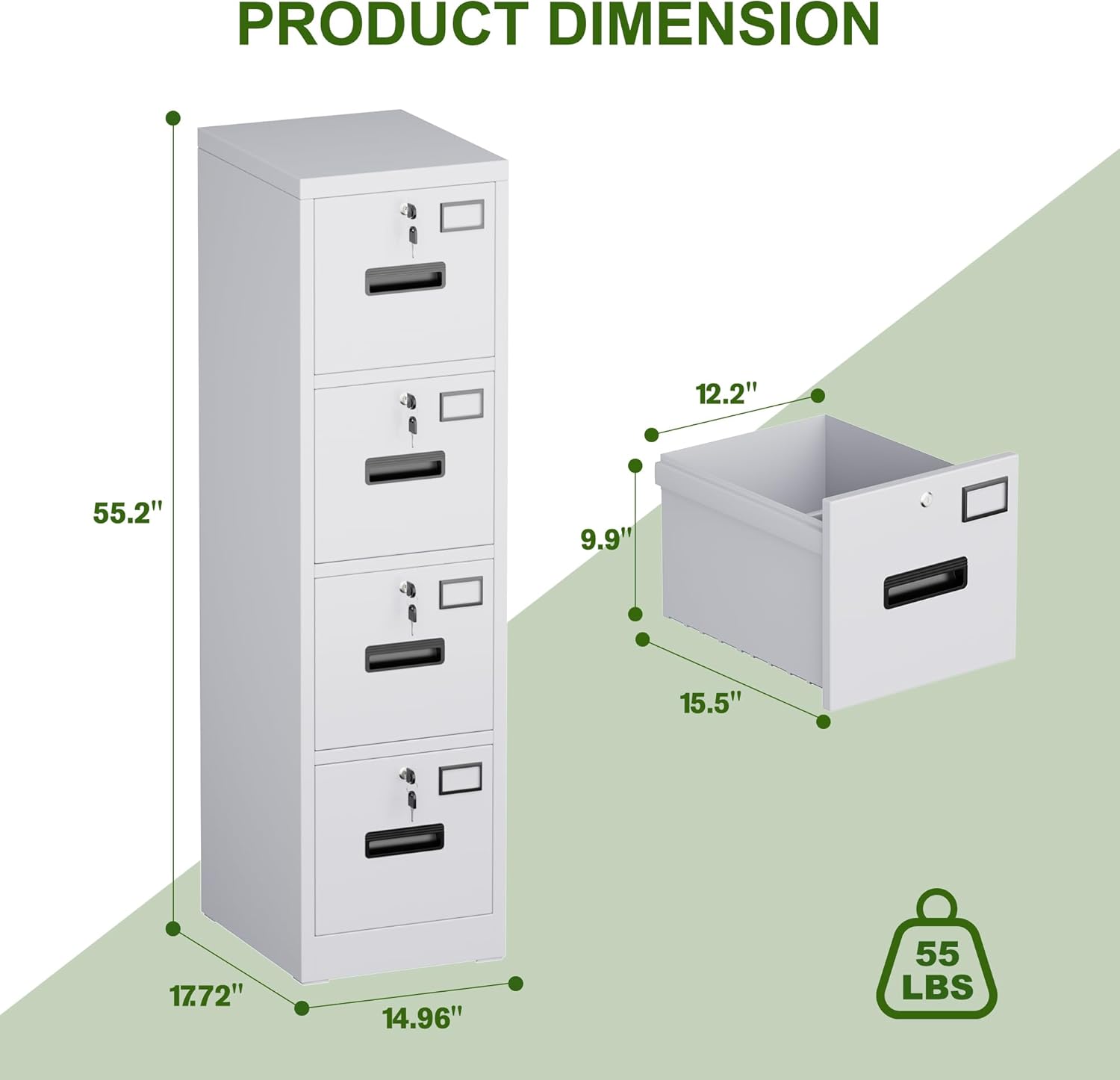Aobabo 4 Drawer File Cabinet, Metal Filing Cabinet with Lock, Suitable for Home Office School Hanging Files Letter/Legal/A4 Size,White,Required-Assembly,17.72" D x 14.96" W x 55.2" H