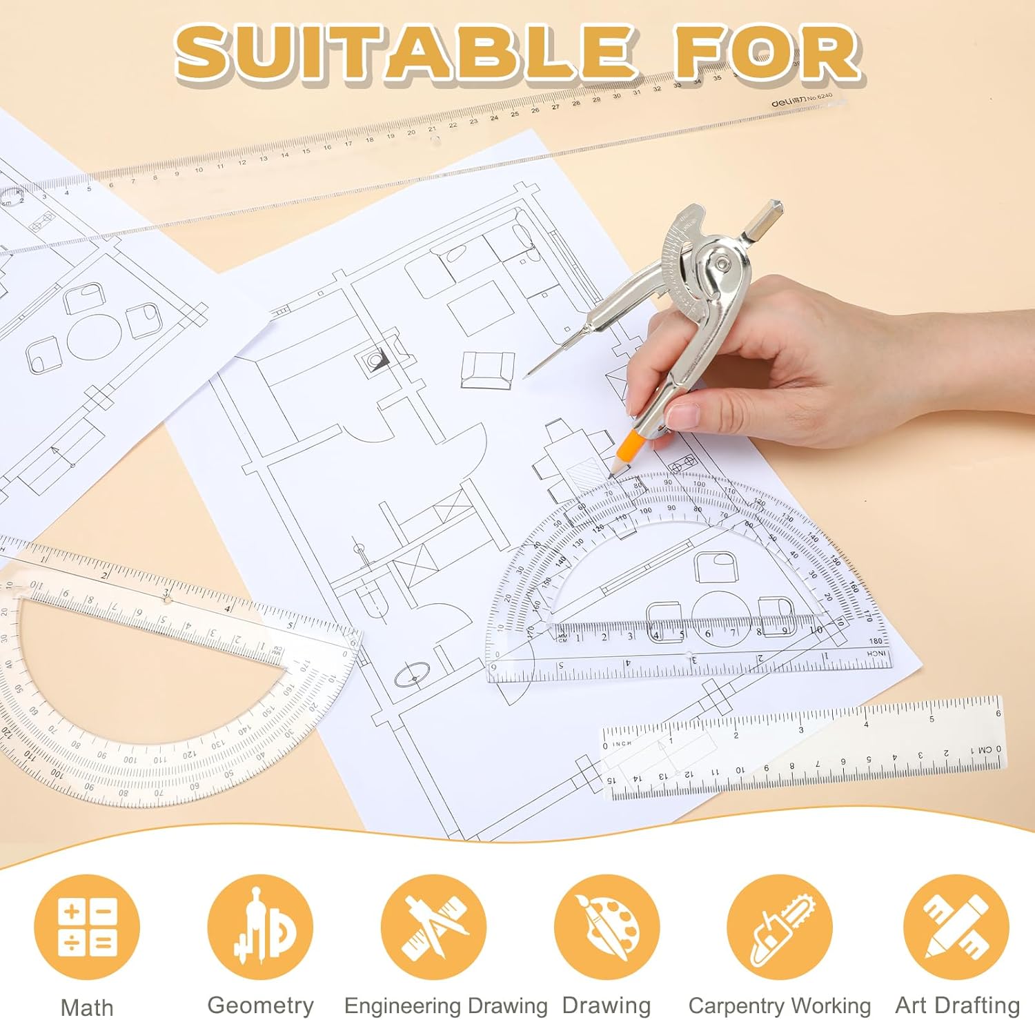 - Widely Used: this exquisite drawing tool is widely used in various fields, including mathematics, engineering, carpentry, arts, and drawing. Whether you're a student, teachers, architects, engineers, mathematicians, artists, or a designers, this practical and multifunctional set helps you get the job done quickly and easily