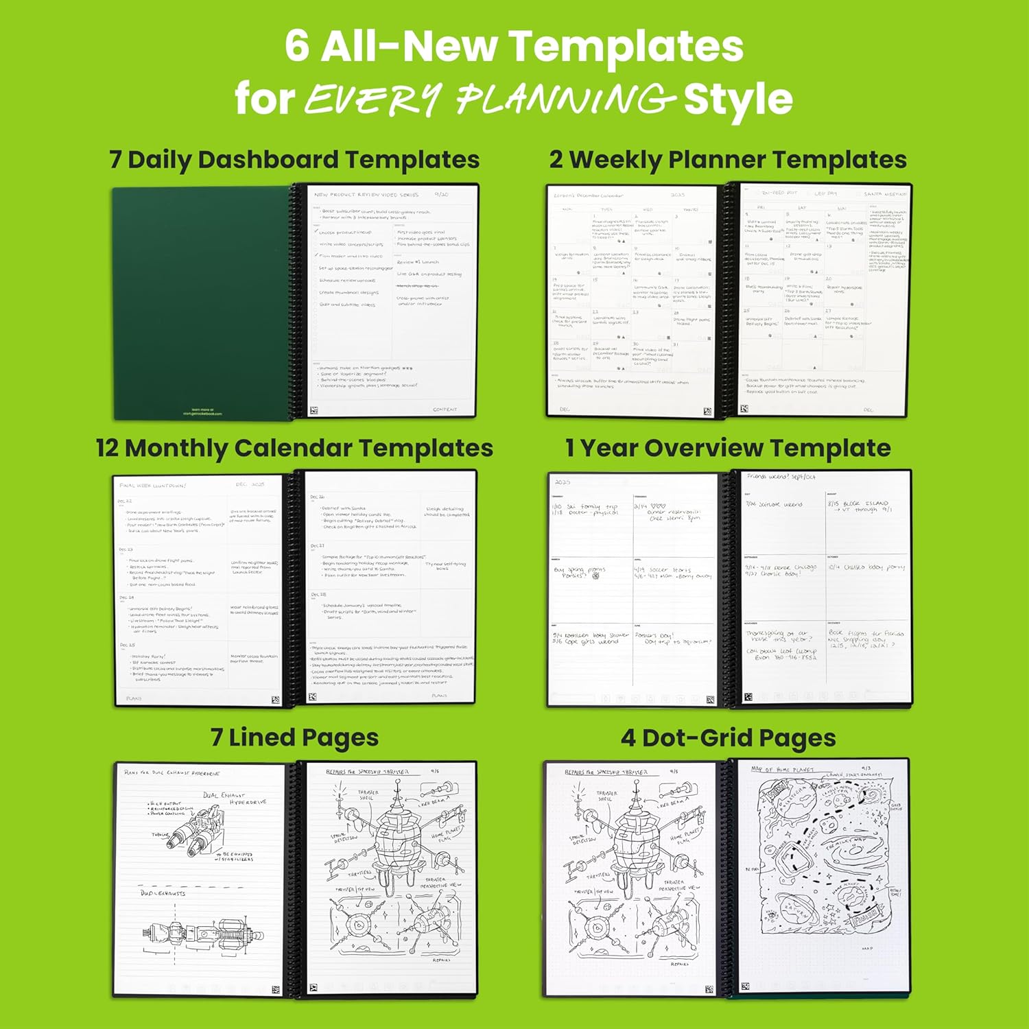 - All-in-One Planning: 48 reusable pages include daily, weekly, monthly, and annual templates, plus lined and dotted pages for flexible organization, goal tracking, and capturing ideas whenever inspiration strikes.