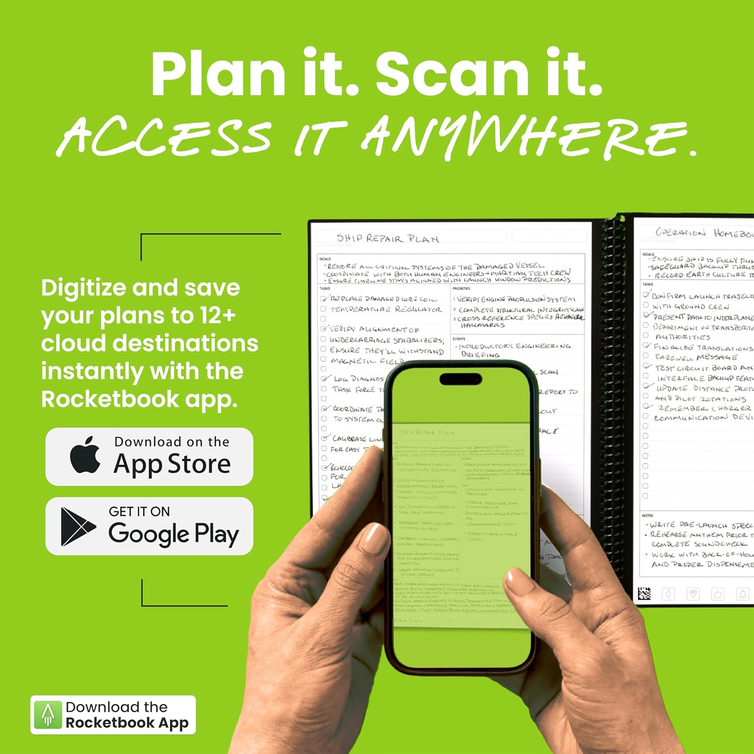 - Plan, Digitize, Erase, Reuse: Track to-dos & manage schedules with the included Pilot Frixion Pen, digitize effortlessly using the Rocketbook app, store in your preferred cloud destination. When done, simply wipe the pages clean with a towel & water.