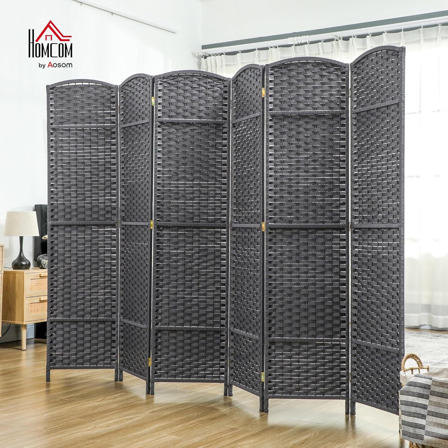 HOMCOM Room Divider, 6 Panel Folding Privacy Screen, 5.6' Tall Freestanding Wall Partition for Home Office, Bedroom, Charcoal Gray