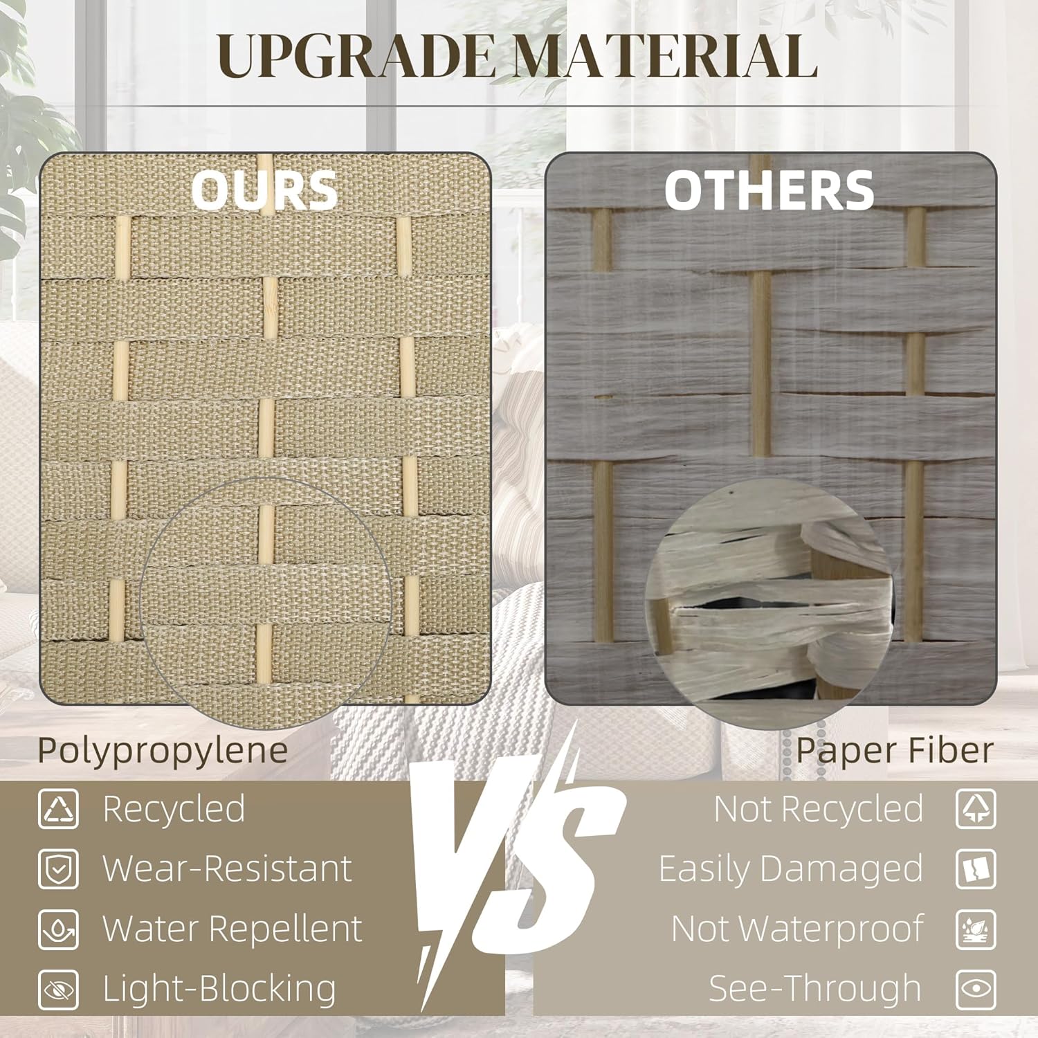 - Quality Material: Our room divider wall is made from a pine wood frame for sturdiness and polypropylene webbing for superior privacy and durability. It outperforms traditional paper fiber panels and their issues with separation and gaps.