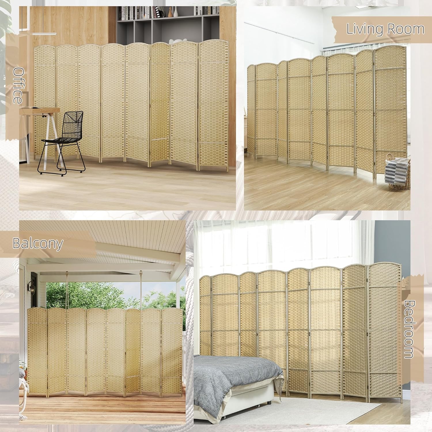 HOMCOM Room Divider, 8 Panel Folding Privacy Screen, 5.6' Tall Freestanding Wall Partition for Home Office, Bedroom, Beige