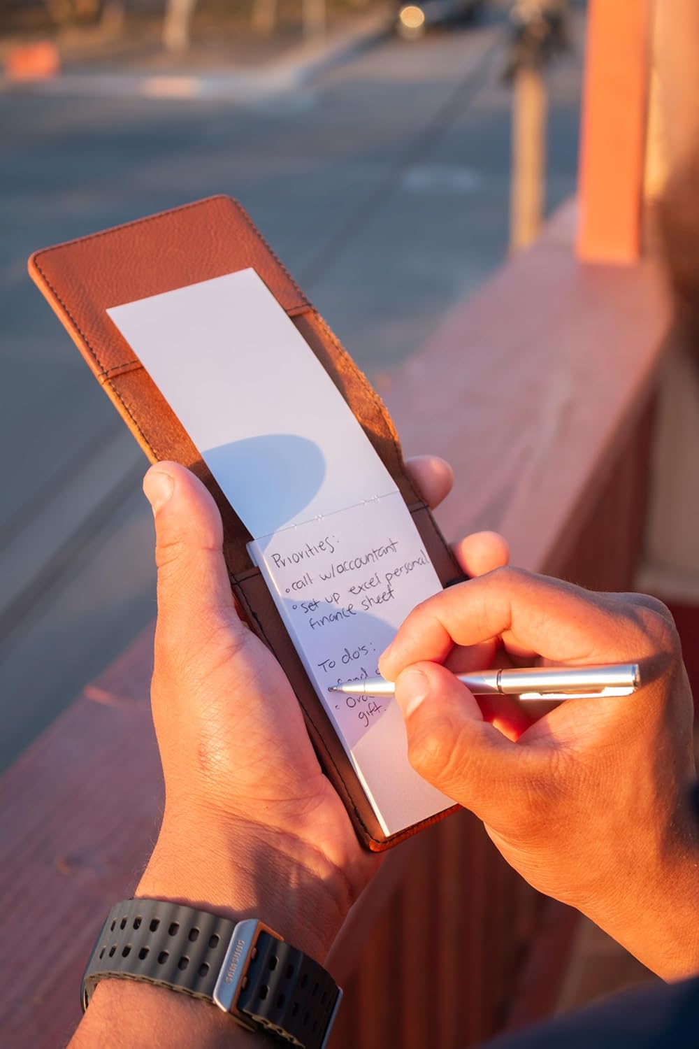 - Small enough to fit in your pocket, the notepad measures 3.25 inches wide and 4.5 inches long. Includes a miniature ballpoint pen and 50 sheets of blank paper.