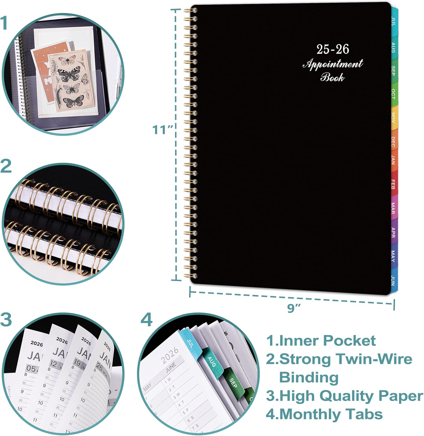 - ♚FEATURES - 9" x 11" Planning Pages | Reference Information | Yearly Overview | Holidays | 2025-2026 Calendar | Strong Twin-Wire Binding | Julian Date | Premium Paper | Elegant Design | Colorful Monthly Tabs | Two-side Pocket